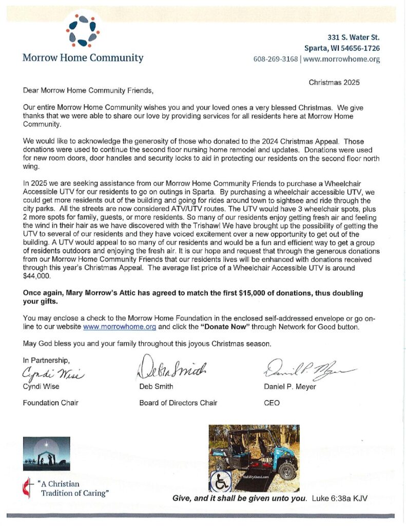Committed to quality and Christian care, the Morrow Home Foundation helps promote and financially support Morrow Home’s needs. To differentiate gifts from daily operational income, all gifts, bequests and estates intended for Morrow Home are administered by the Foundation. Started in 1988, the Foundation’s focus is furthering quality care in our community through programs and projects that make a positive impact.